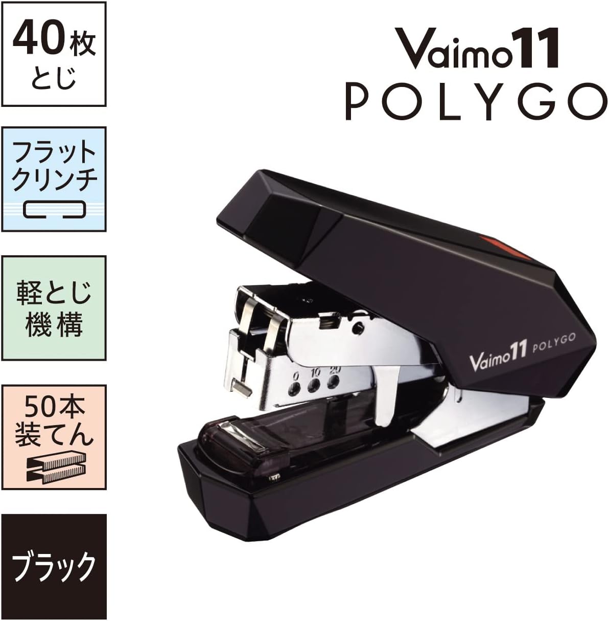 Max HD-11SFLK/K Stapler Bimo 11 Polygo, 40 Sheets, 50 Pieces, Black