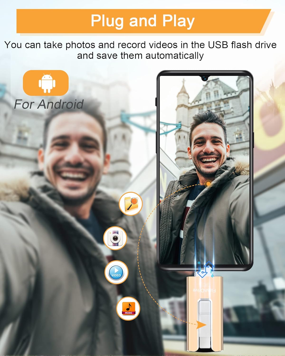 - 【Free up Phone and Pad memory space immediately】: If your Phone or Pad has almost used up all the memory space, this USB flash drive can help alleviate 256GB of storage space. Whether you like to shoot short videos or take selfies, our jump drives are perfect for you. You don’t have to pay extra for additional storage space, just plug in the external storage space of your phone. Enjoy the extra space (256GB) of the phone flash drive.