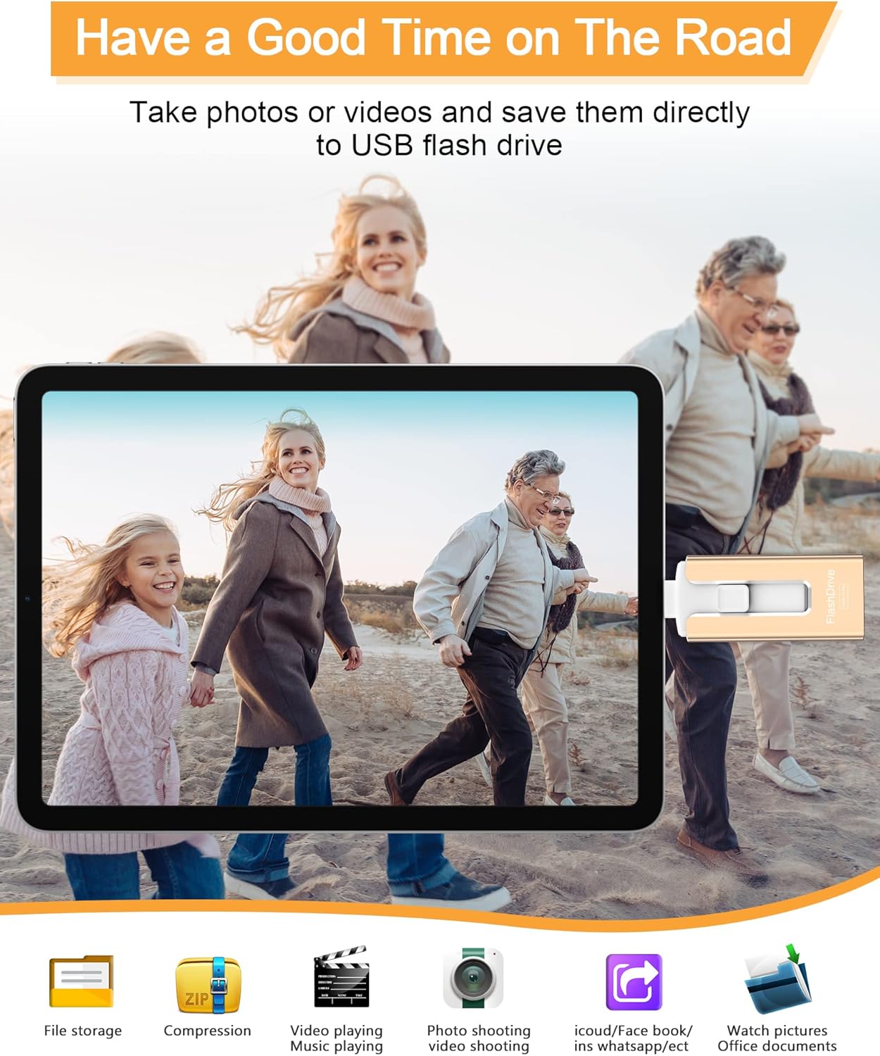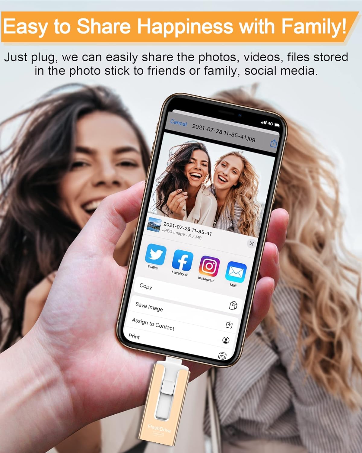 - 【High compatibility】: Our thumb drive is designed for use with a wide range of devices, including Phone 14, 14 Pro, 14 Pro Max, 14 Plus, Phone 13, 13 Pro max, 13 Pro, 13 mini, 12 Pro max, 12 Pro, 12, 12 mini, 11 Pro max, 11 Pro, 11, XS MAX, XS, XR, X, 8, 7, 6, 6s, 5s (System Version 8.2 Or higher). The photo stick supports Android smartphones (Need to open OTG function). Our USB storage drives also support computers and other devices with USB ports.
